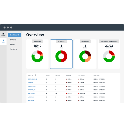 - Site overview: Monitor system health, Care status, and alerts across all installations in a user-friendly dashboard