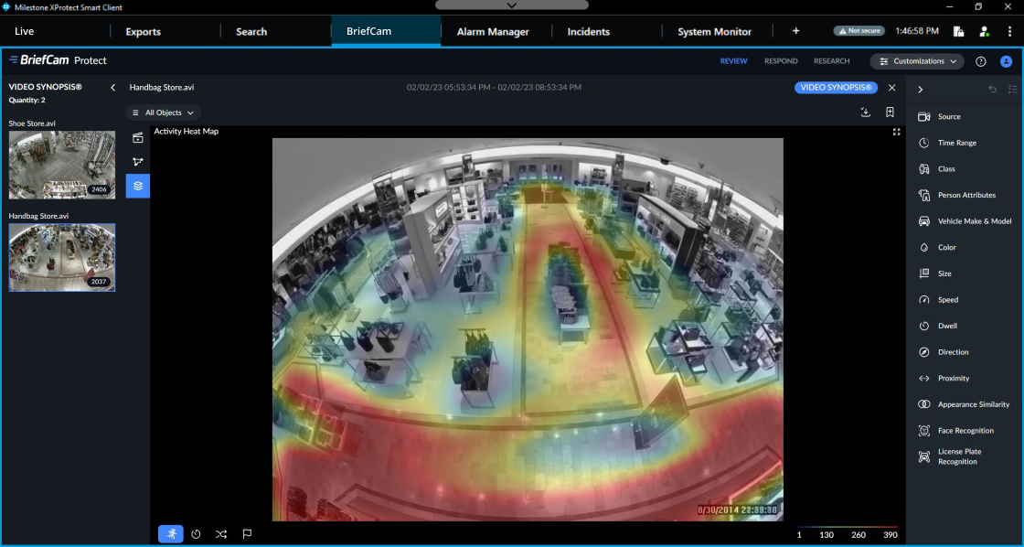Many of these features can be achieved in BriefCam. Below you can see the heatmaps identifying high-traffic areas within a store: