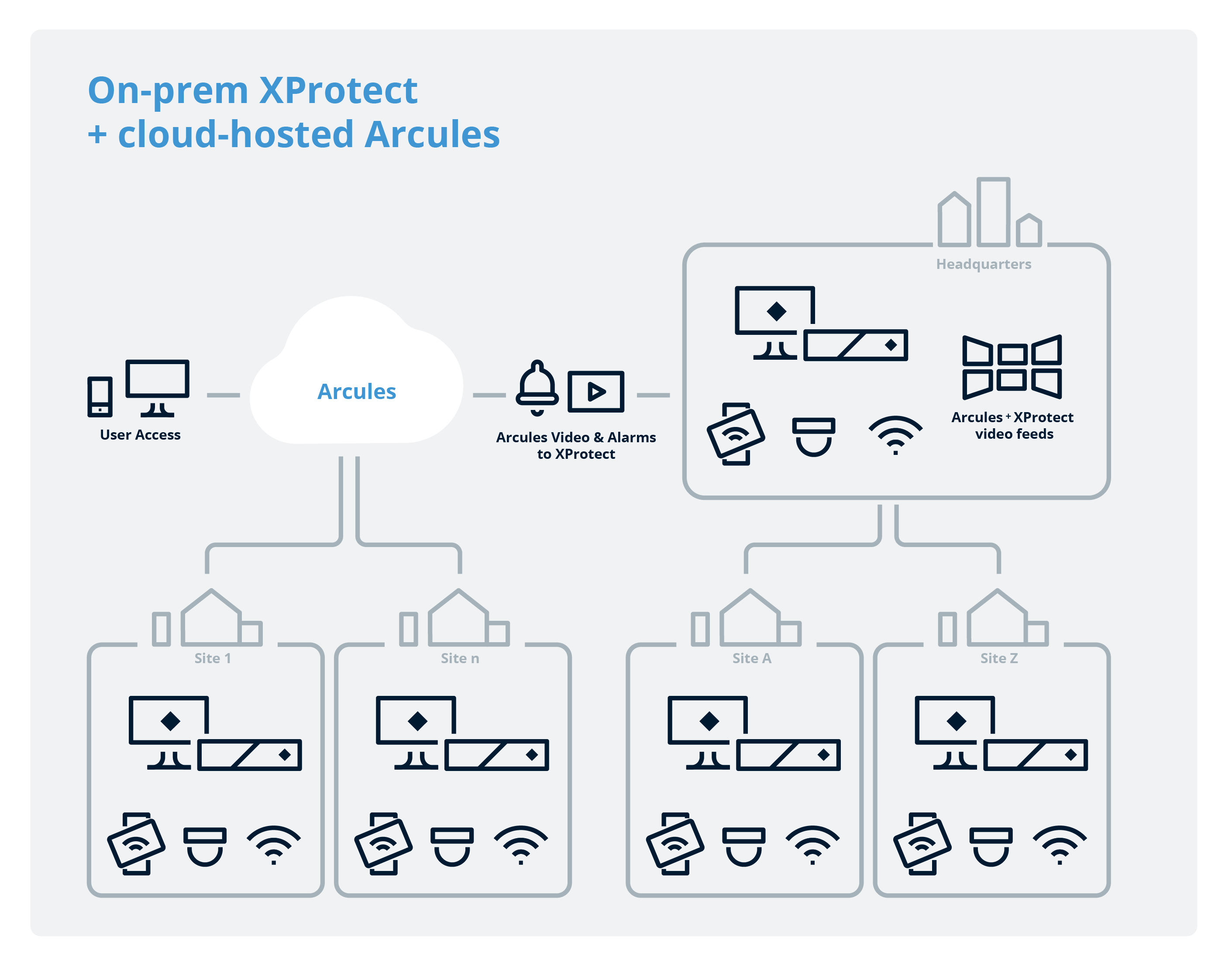 What if you work for a retail chain that prefers on-prem for larger locations and cloud-based surveillance for smaller ones? The good news is that you can use XProtect and Arcules together in the same application interface. This hybrid setup lets you expand your video coverage to dispersed sites with minimal effort while gaining access to all live video, recordings and alarms, centrally from XProtect. For a more in-depth guide to the different deployment possibilities Milestone offers, head here.