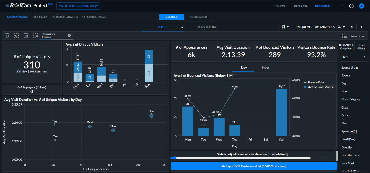 Face re-identification is used here to analyze unique visitor patterns—such as dwell time, frequency and movement—using anonymous facial signatures rather than identifying individuals.