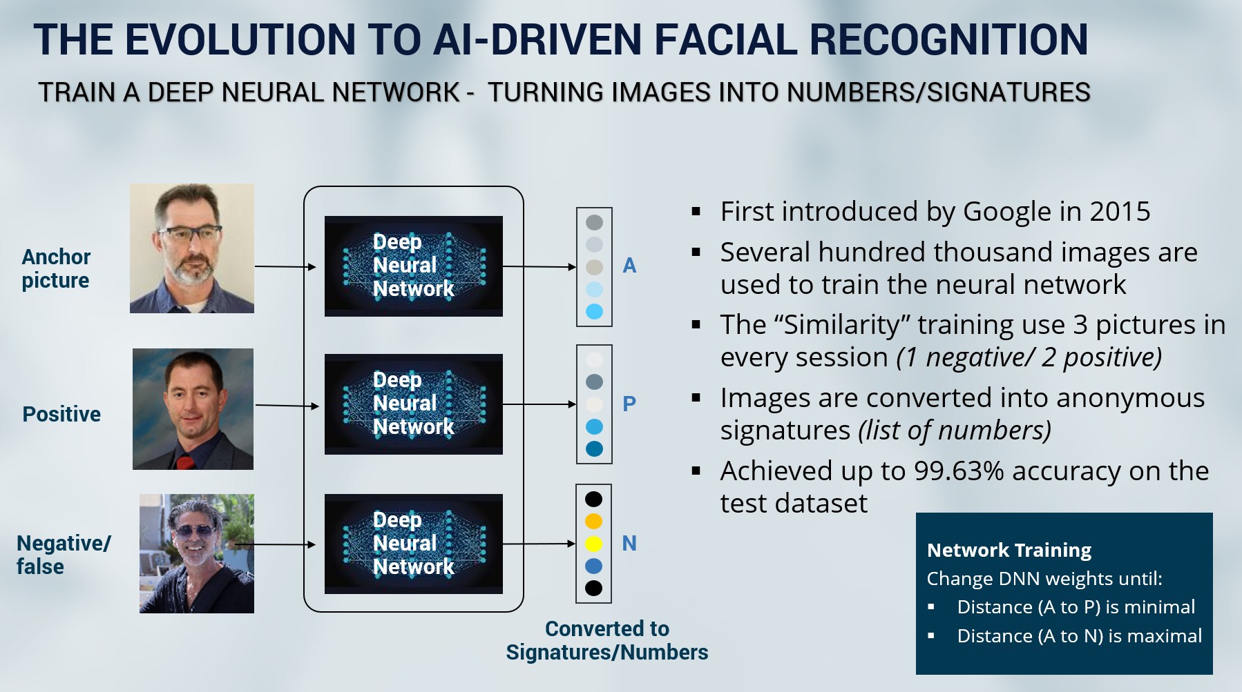 Modern, AI-driven face recognition systems work differently. Using deep neural networks trained on large and diverse datasets, facial images are converted into anonymous numerical signatures rather than being compared as raw images. Matching signatures instead of images improves precision while reducing reliance on image data.