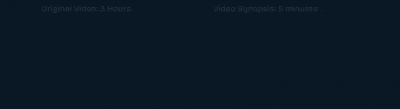The original three-hour video (left) is condensed into a five-minute Synopsis (right), showing events that occurred at different times within a single, time-stamped view.