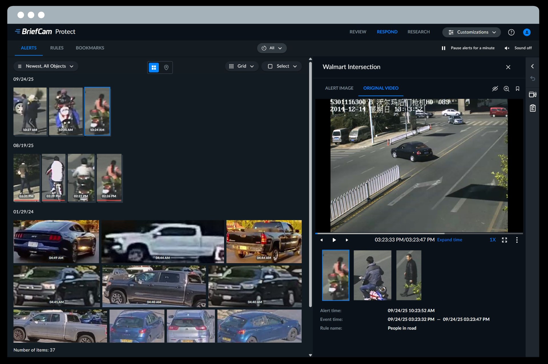 BriefCam Respond delivers that situational awareness with rule-based alerts that trigger the moment specific conditions are met. These alerts can be tailored to address critical situations, including: