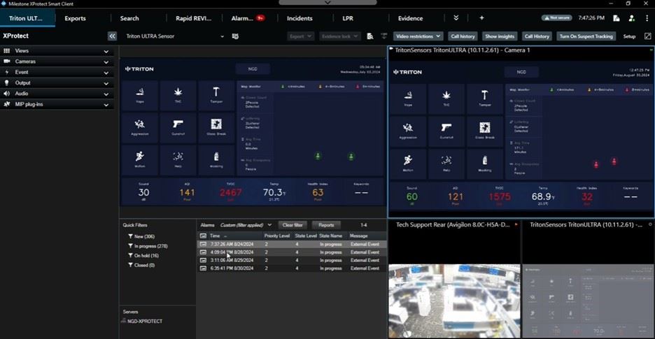 For instance, alerts from Triton Sensors—such as loitering, overoccupancy or drug detection—can appear alongside BriefCam, allowing operators to validate events as they occur and respond with confidence. In XProtect, each IoT sensor feed is treated like a video stream, making them all bookmarkable, searchable and exportable. Events can be configured to trigger custom actions, such as dispatching an officer, sending an alert to a supervisor or activating a speaker system.