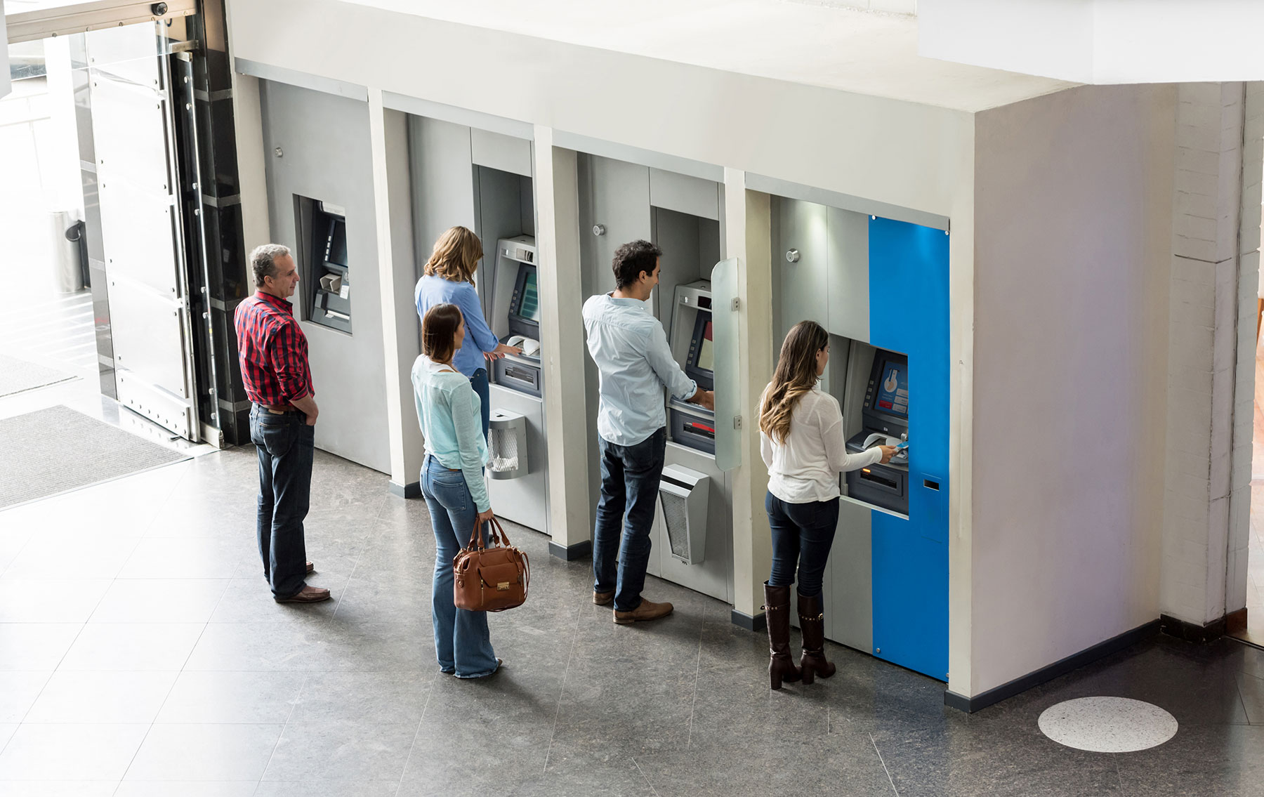 ATM spaces have been redesigned to restrict general public access. Members swipe their customer cards at the intercoms, where audio sensors enable voice connection.