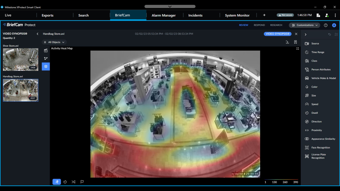 Besides motion detection, XProtect doesn’t have any built-in analytics. It’s an open-platform, device-agnostic product that lets you choose whether you want to use camera-side analytics, analytics from a technology partner, a paid XProtect extension or integration with Milestone’s BriefCam analytics software. Our primary focus is on supporting edge analytics and partner solutions, but we’re also working on having some more analytics available out-of-the-box.