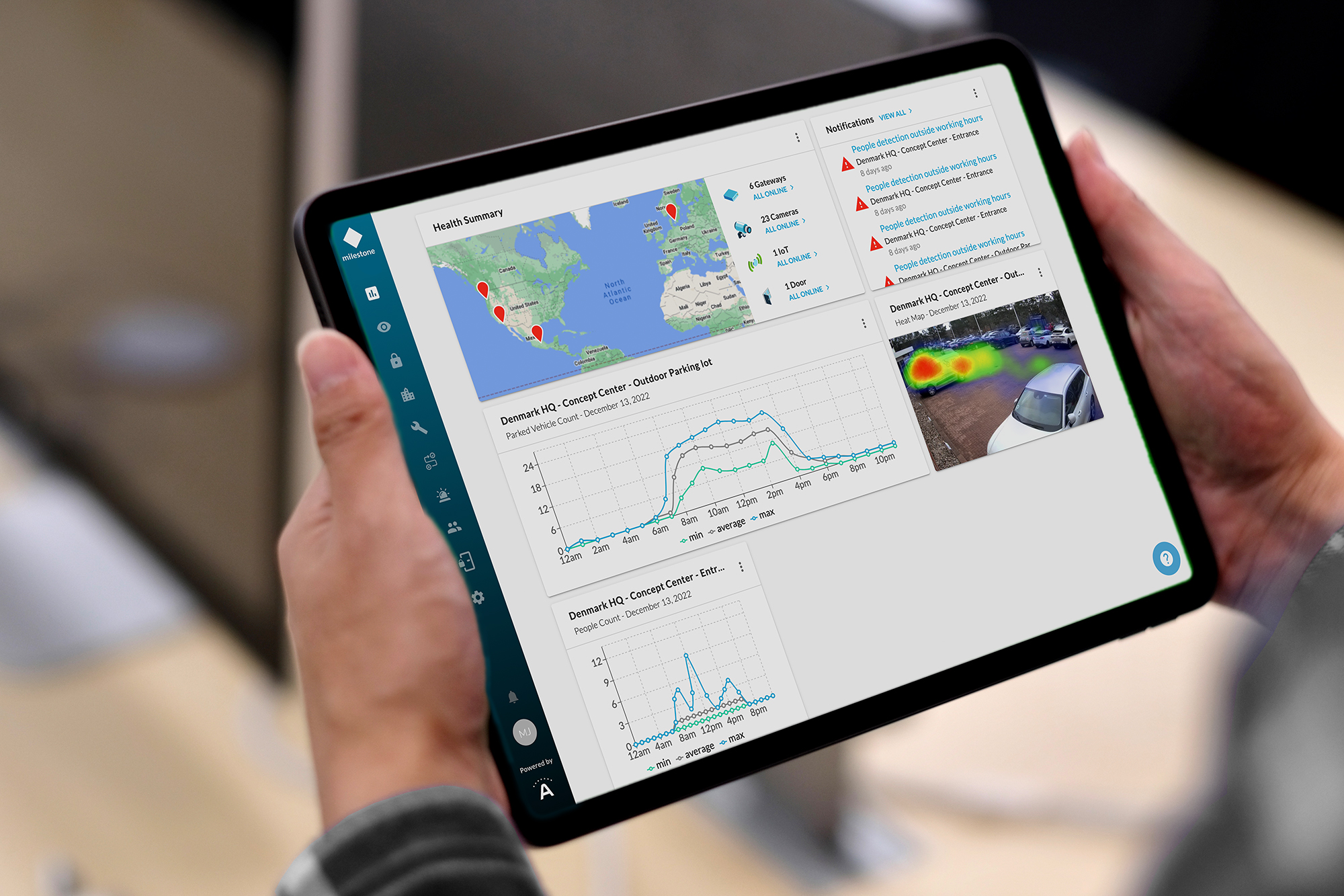 The term “remote” can refer to spaces in different cities or even countries, but it can also refer to spaces within the vicinity of the core location. For example, a school or university with a sprawling campus might already have a VMS for classrooms, libraries, cafeterias, etc. However, they also need surveillance for outdoor sporting fields and more remote parking lots.