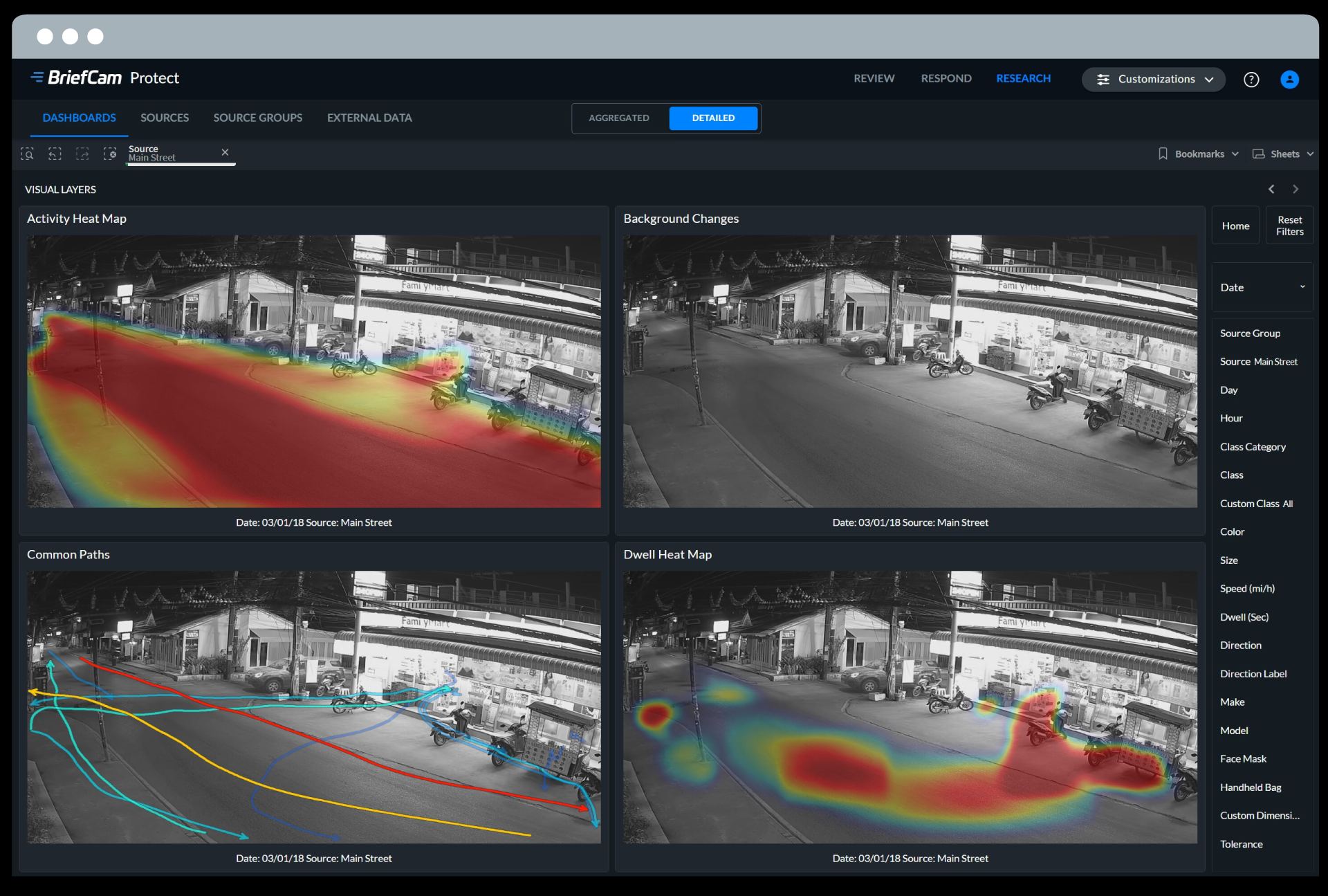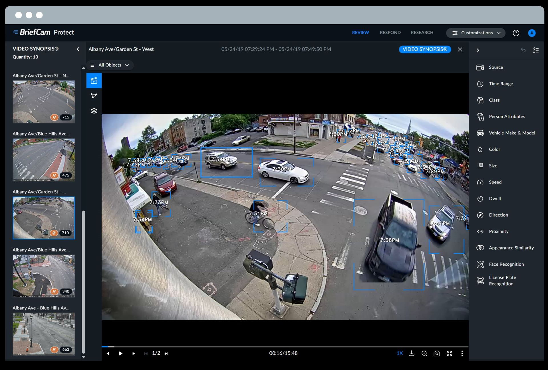 BriefCam’s comprehensive platform is comprised of 3 powerful modules: Review, Respond and Research. Using these modules, you can: