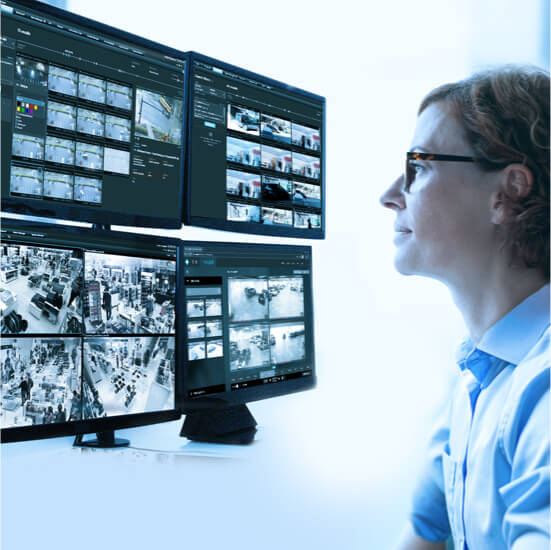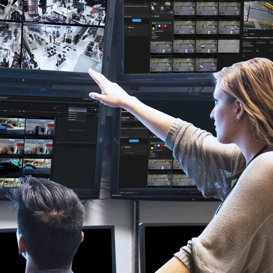 Unabhängig vom Hersteller unterstützt die XProtect Smart Wall jegliche Kombination von Bildschirmen. Es wird auf Standardservern und -anzeigen ausgeführt. Dies verleiht Ihnen die Freiheit, die Hardware zu wählen, welche am besten auf Ihre Anforderungen und Ihr Budget abgestimmt ist. Die XProtect Smart Wall setzt auch hardwareunterstützte Dekodierung ein, was zu einer hochwertigen Videoleistung und einer signifikant reduzierten CPU-Last führt. Ihre vollständige Integration im XProtect Smart Client vereinfacht ihre Bereitstellung und verringert die Ansprüche an eine umfassende Anwenderschulung.